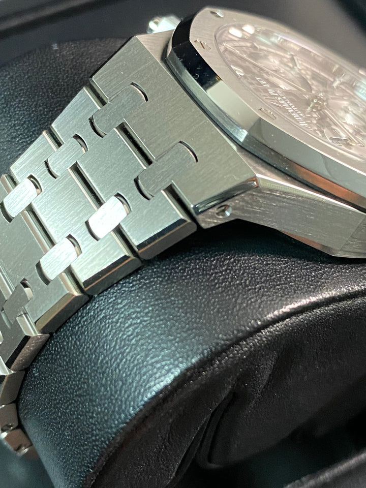 This watch is in mint pre-owned condition and will come complete with all original Audemars Piguet accessories when purchased. The watch band is in superb condition as seen in the photo gallery. We provide a 1-year Warranty.