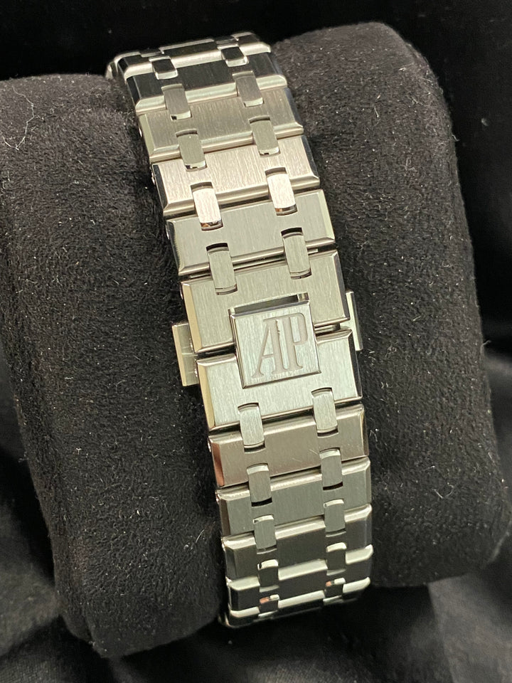 This watch is used but in super mint condition and will come complete with all original Audemars Piguet accessories when purchased. The bracelet is in perfect shape as seen in the photo gallery. We provide a 1-year Warranty.