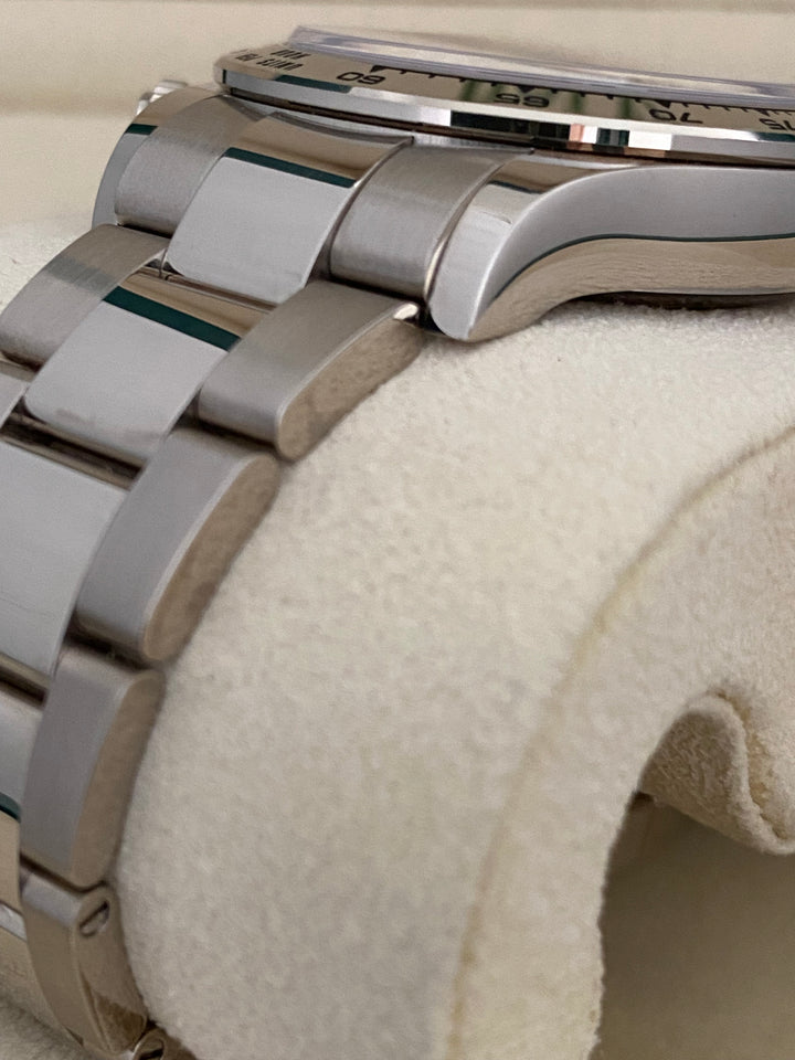 This watch is used but in mint condition, unpolished, and will come complete with all original Rolex accessories when purchased. The oyster bracelet is in superb shape as seen in the photo gallery. This timepiece was originally purchased from AD in December 2020 as indicated on its warranty card. Factory Rolex 5-year Warranty is valid until December 2025. We provide a 1-year Warranty.