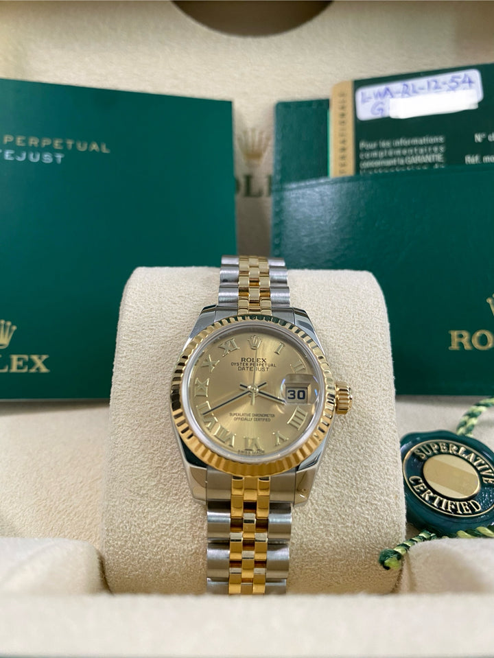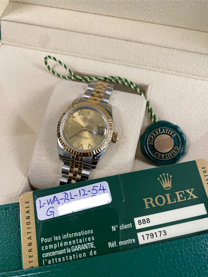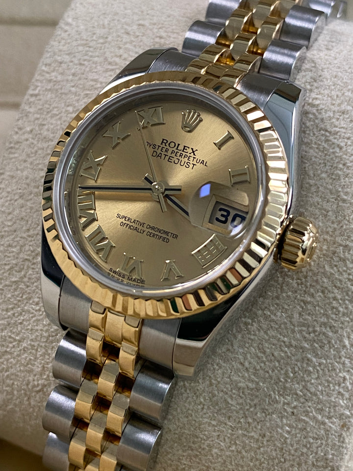 Rolex Lady-Datejust - 2010 - Champagne Roman Dial - 179173 *FULL SET*