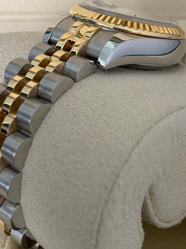 This watch is used but in mint condition and will come complete with all original Rolex accessories when purchased. The jubilee bracelet is in superb shape with little signs of stretch as seen in the photo gallery. This timepiece has a G serial and was originally purchased from AD in June 2013 as indicated on its warranty card. We provide a 1-year Warranty.
