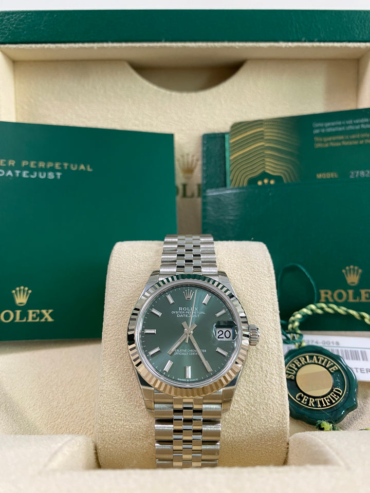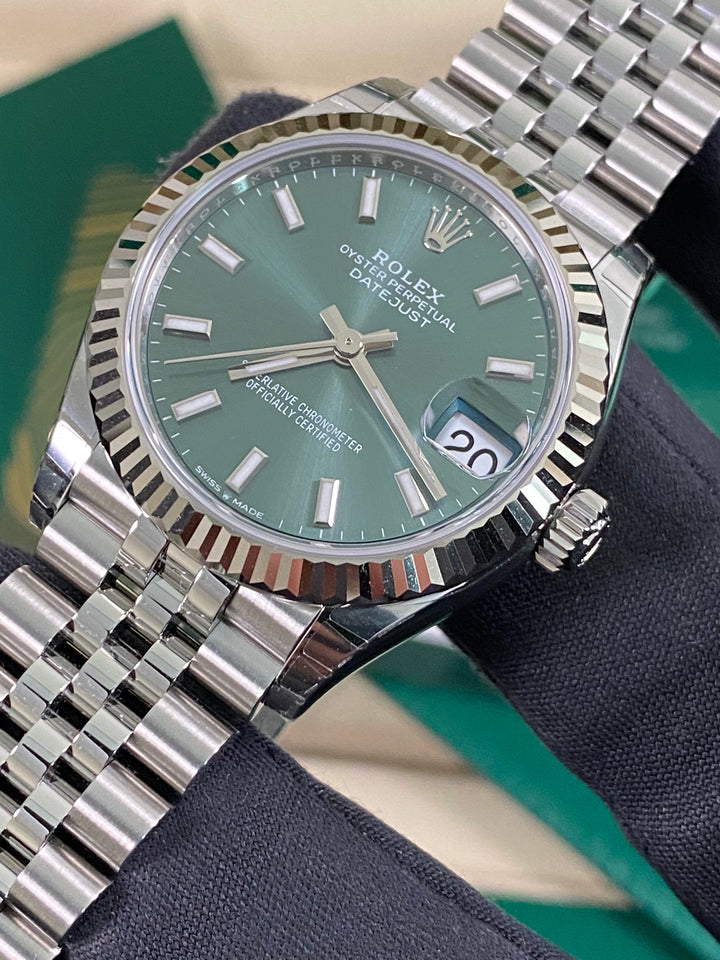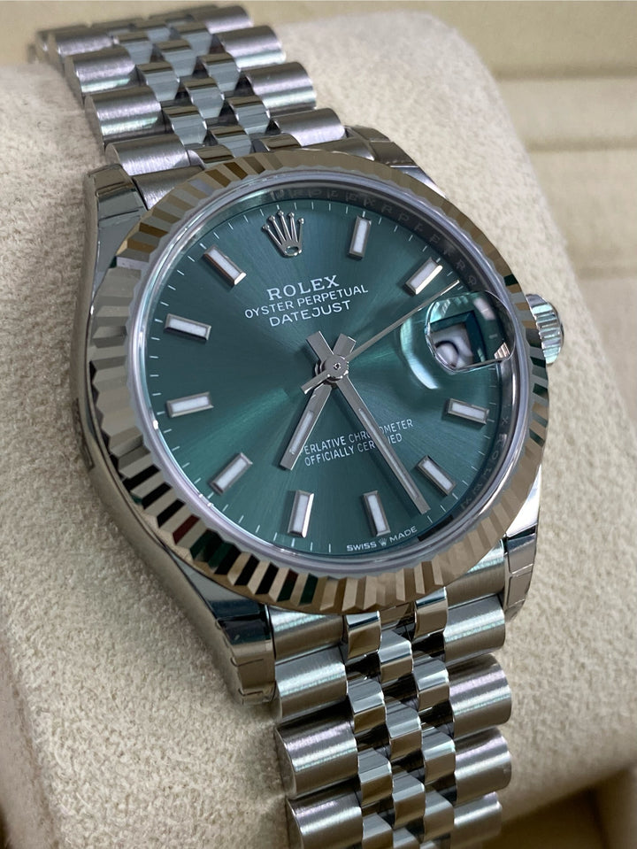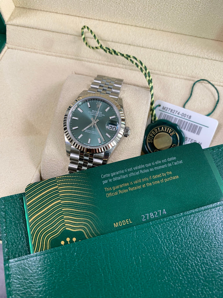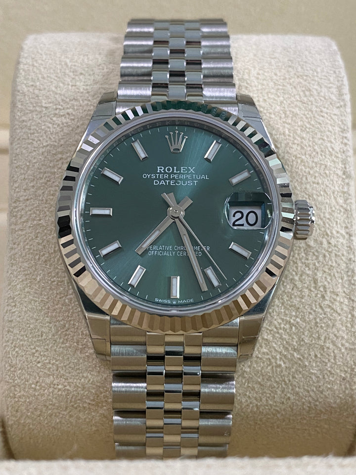 Rolex Datejust 31 - 2025 - Fluted Bezel - Mint Green Dial - Jubilee Bracelet - 278274 *PARTIAL STICKERS*