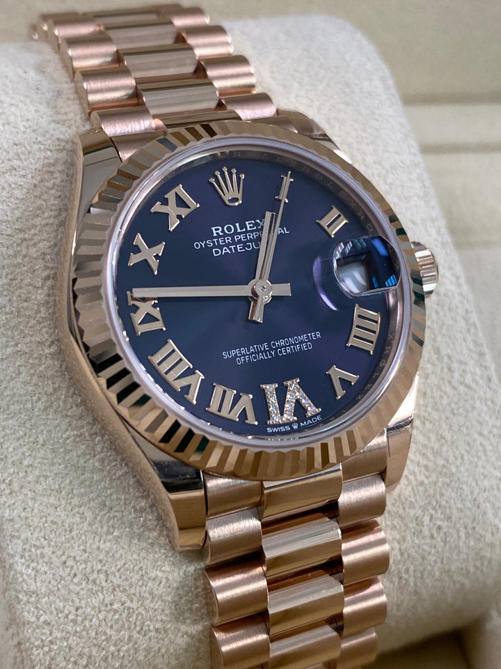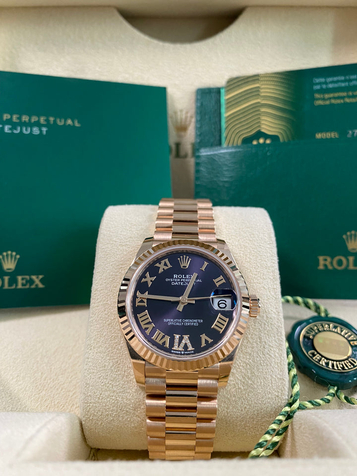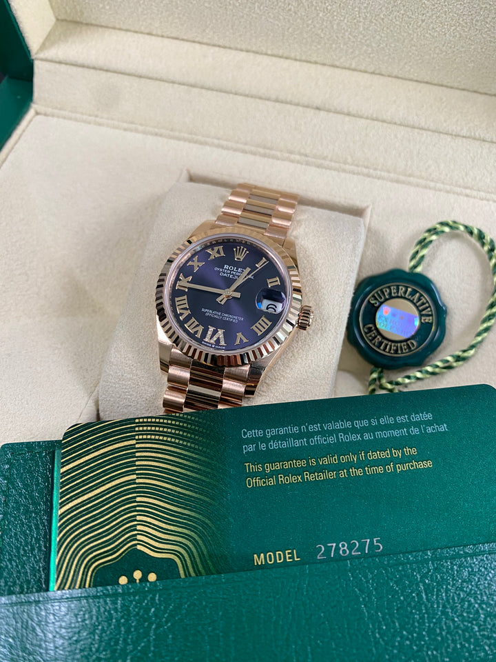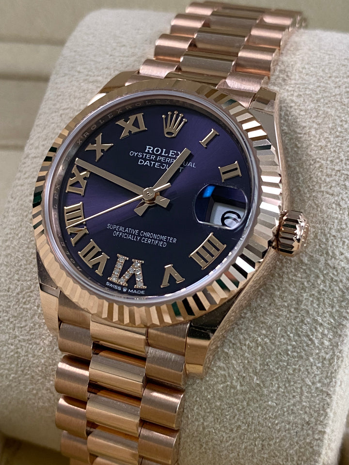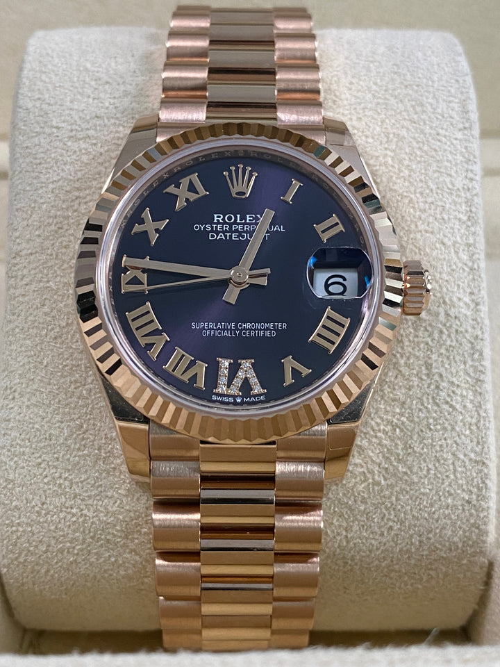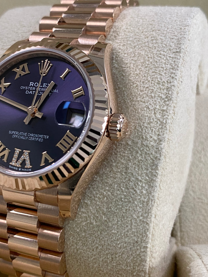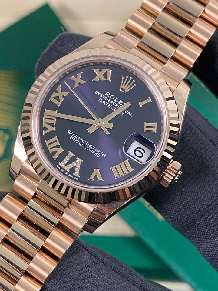 Rolex Datejust 31 - 2025 - Fluted Bezel - Purple Aubergine Dial - President Bracelet - 278275 *FULL SET*