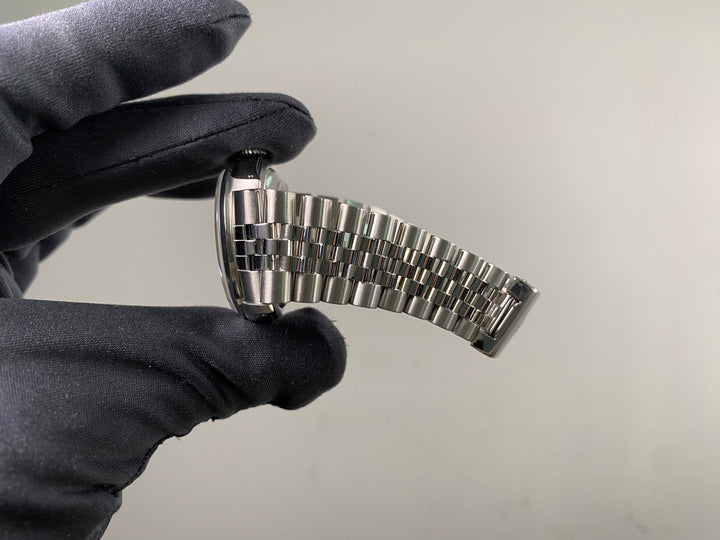 This watch is used but in exceptional condition and will come with an original Rolex box and paper when purchased. Considering its age, the jubilee bracelet is in great shape with an obvious signs of stretch as seen in the photo gallery. This timepiece has an E serial and was originally purchased from AD in July 1993 as indicated on its warranty paper. We provide a 1-year Warranty.
