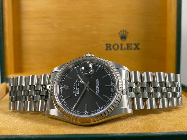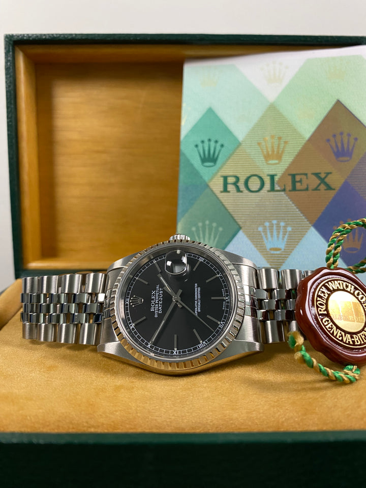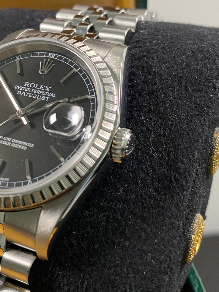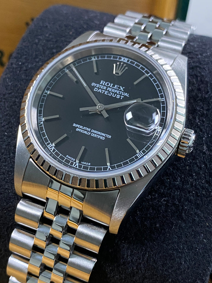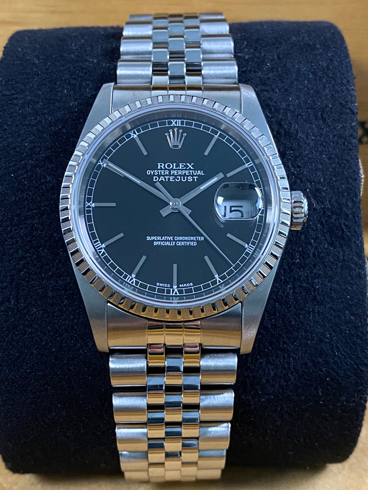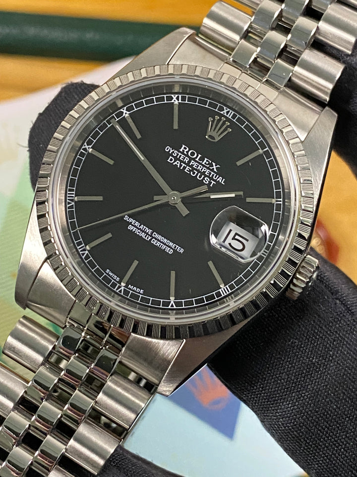 Rolex Datejust 36 - 2005 - Engine Turned Bezel - Black Dial - 16220 *FULL SET*