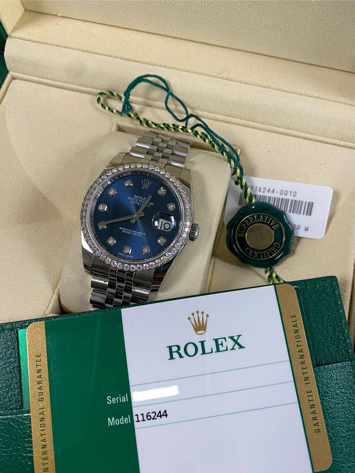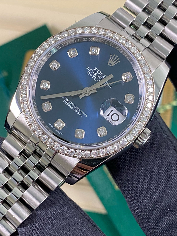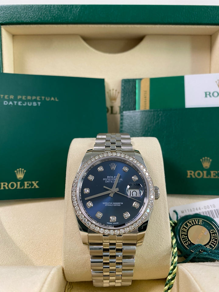 Rolex Datejust 36 - 2018 - 52 Diamond Bezel - Blue Diamond Dial - 116244 *FULL SET*