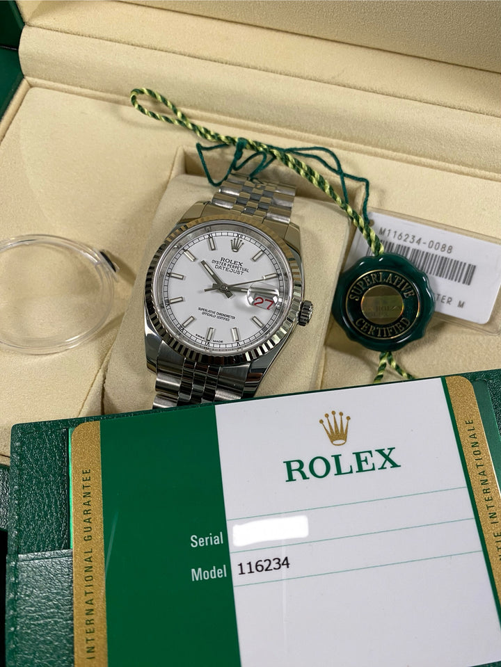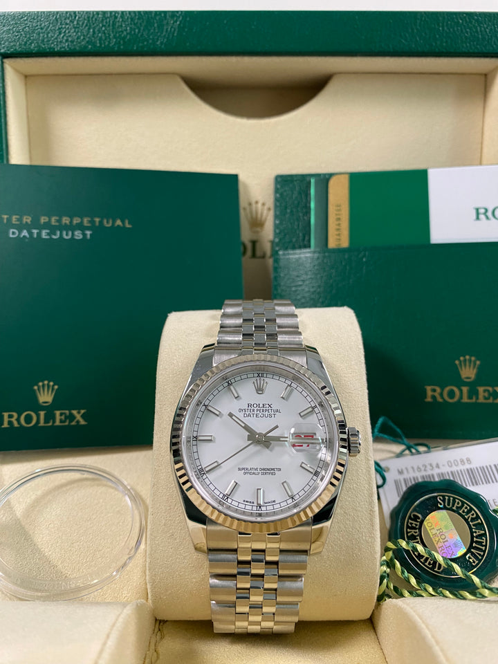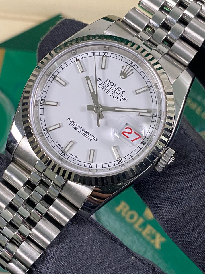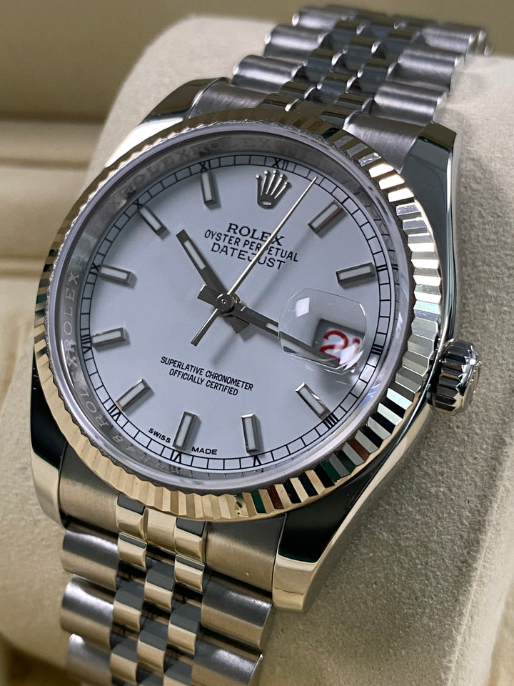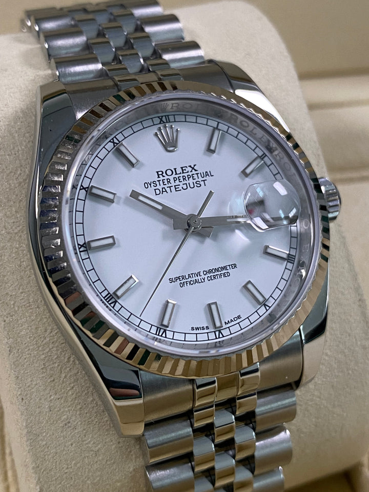 Rolex Datejust 36 - 2019 - White Index Dial Roulette Date Wheel - 116234 *FULL SET*