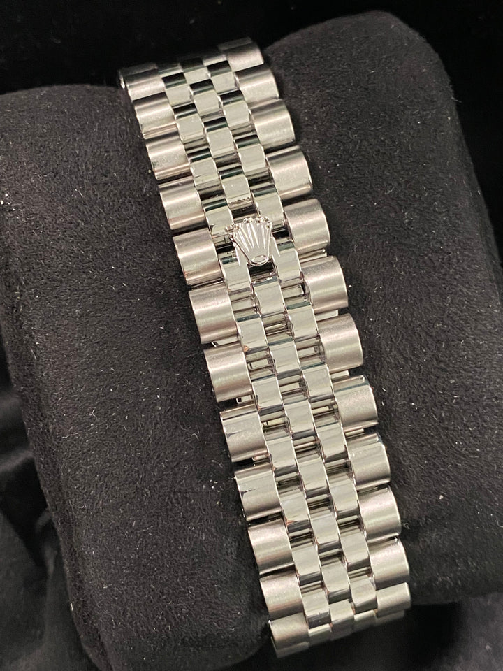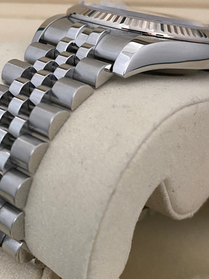 This watch is used but in mint condition and will come complete with all original Rolex accessories when purchased. The jubilee bracelet is in perfect shape as seen in the photo gallery. This timepiece was originally purchased from AD in July 2019 as indicated on its warranty card. Date color is red on odd numbers and black on even numbers. We provide a 1-year Warranty.