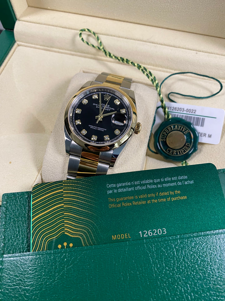 Rolex Datejust 36 - 2024 - Black Diamond Dial - 126203 *FULL SET*