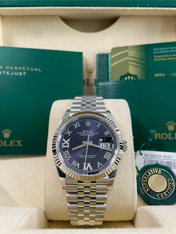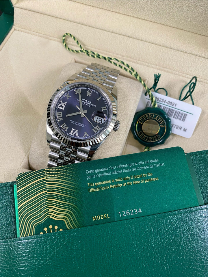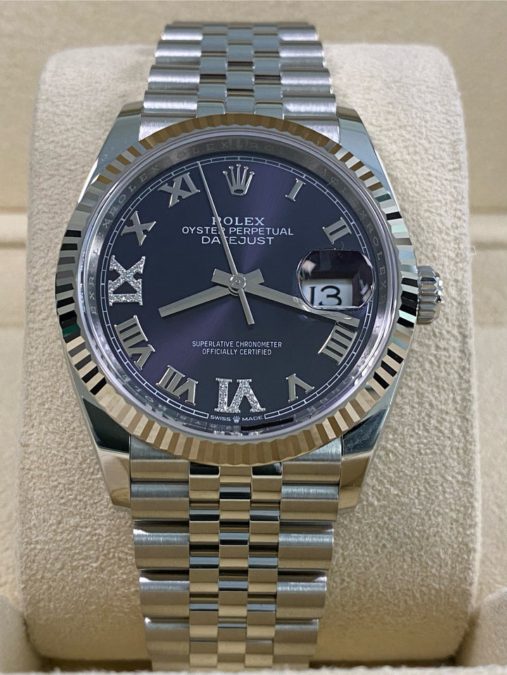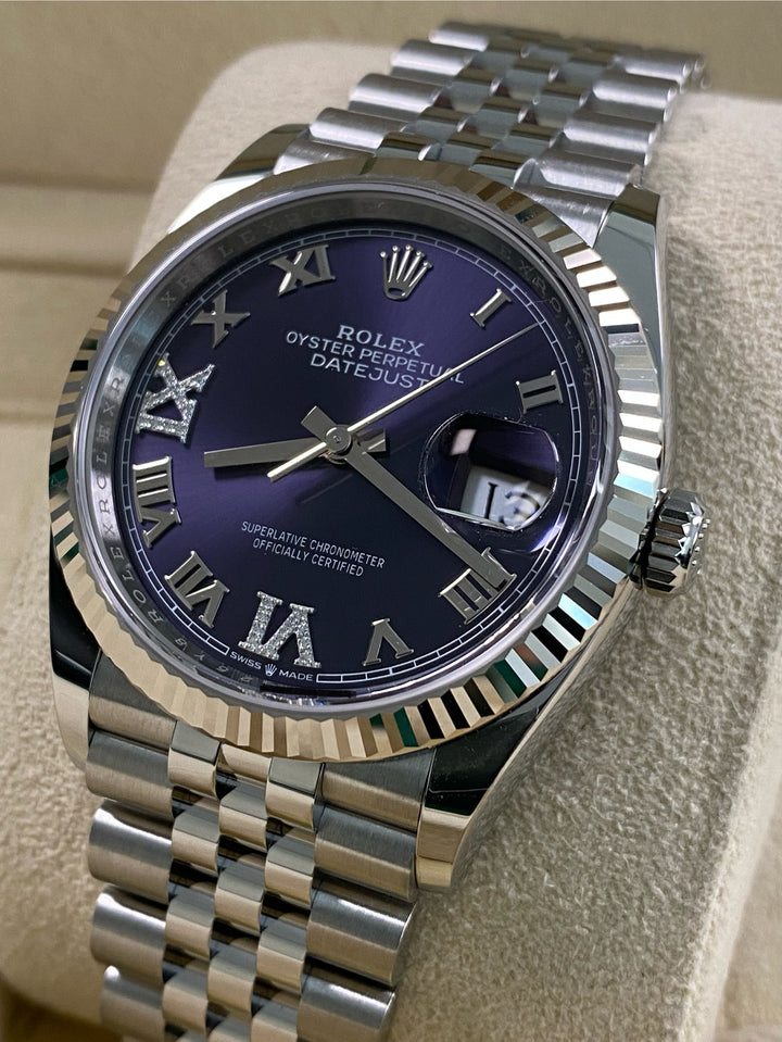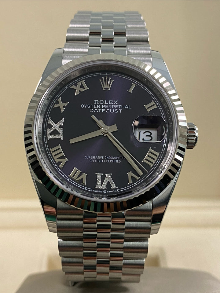 Rolex Datejust 36 - 2025 - Fluted Bezel - Purple Aubergine Roman Dial - Jubilee Bracelet - 126234 *FULL SET*