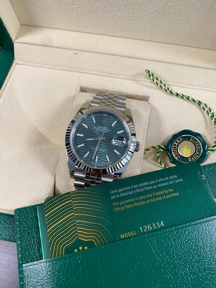 Rolex Datejust 41 - 2023 - Green Fluted-Motif Dial - Jubilee Bracelet - 126334 *Discontinued Model*