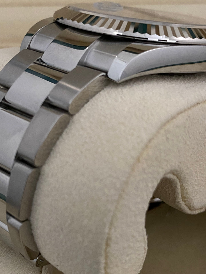 This watch is unworn(without signs of wear) and will come as full set with all original Rolex accessories when purchased. This timepiece was originally purchased from AD in October 2025 as indicated on its warranty card. Factory Rolex 5-year Warranty is included.