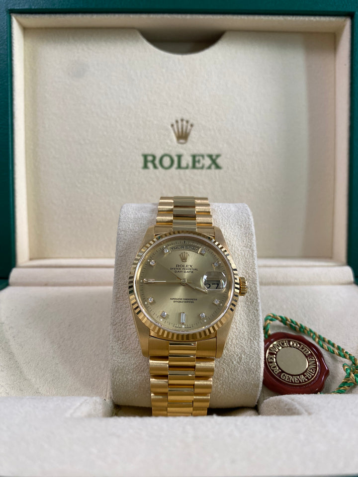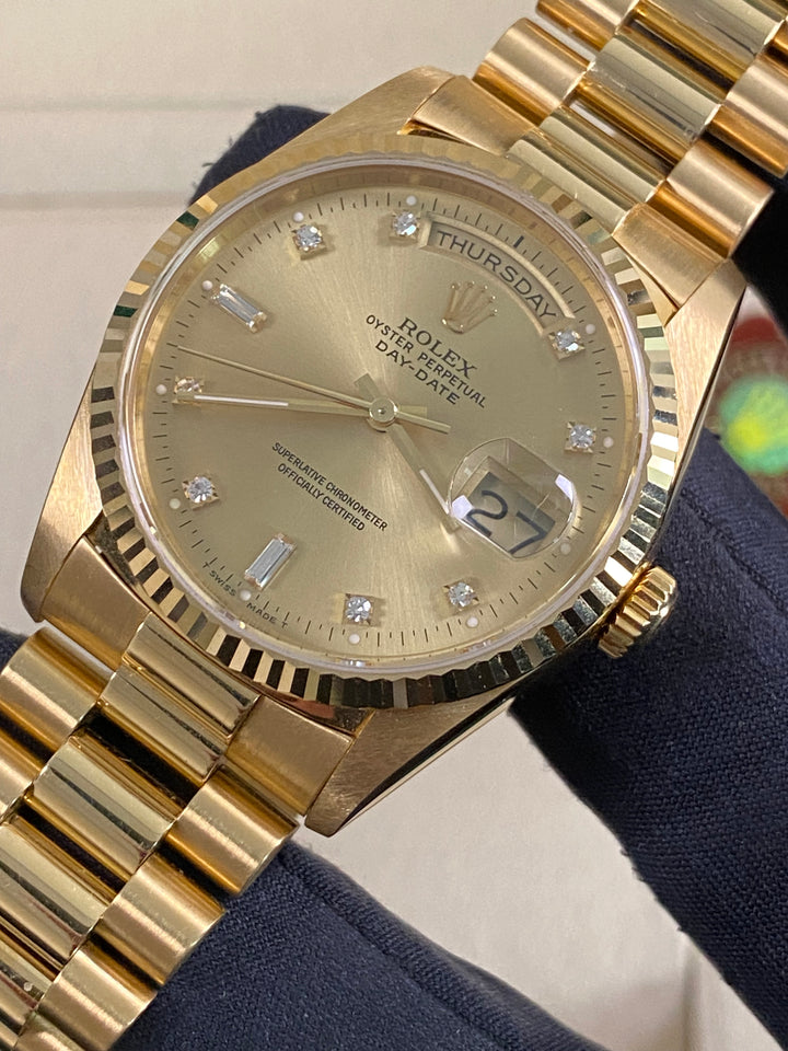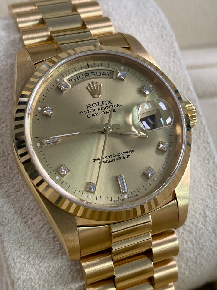 Rolex Day-Date 36 - 1989 - Factory Diamond Dial - President Bracelet - 18238 *UNPOLISHED*