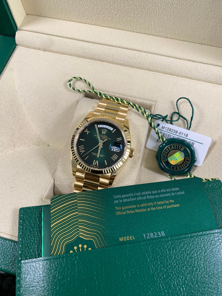 Rolex Day-Date 36 - 2025 - Green Ombre Dial - President Bracelet - 128238 *FULL SET*
