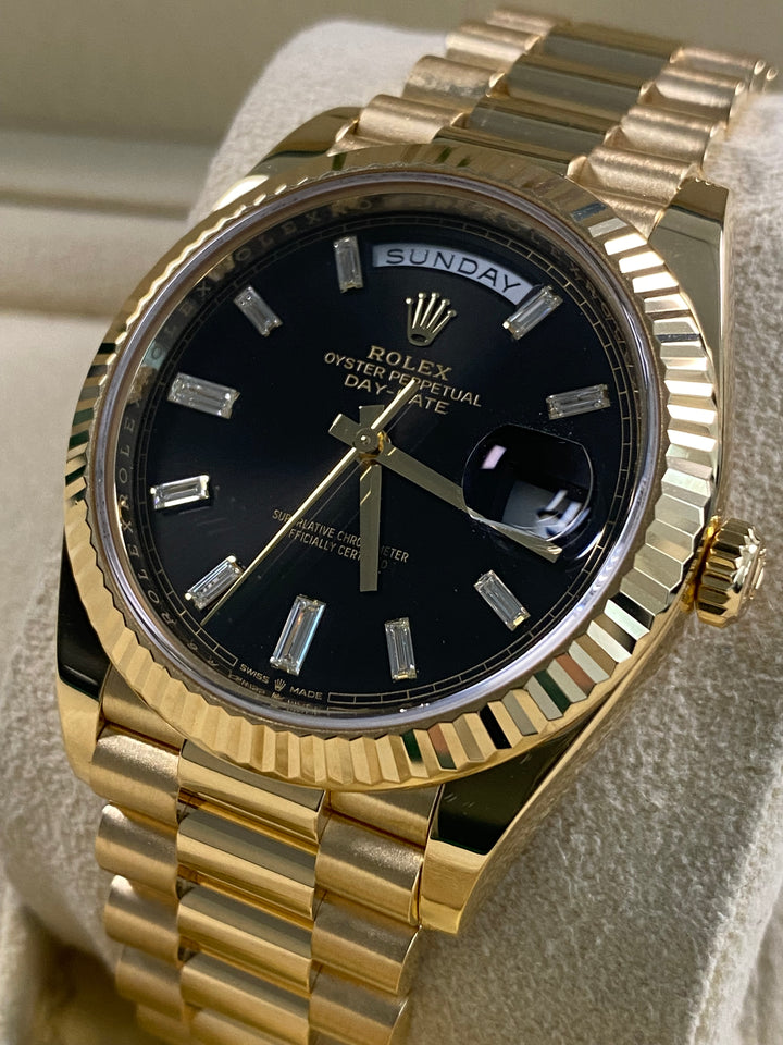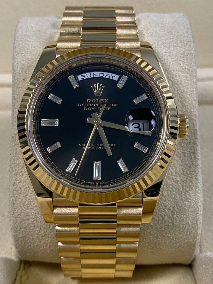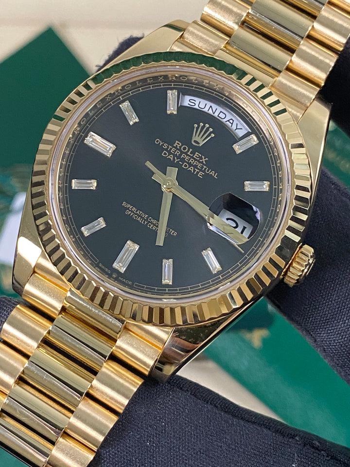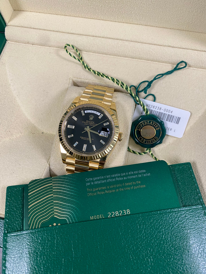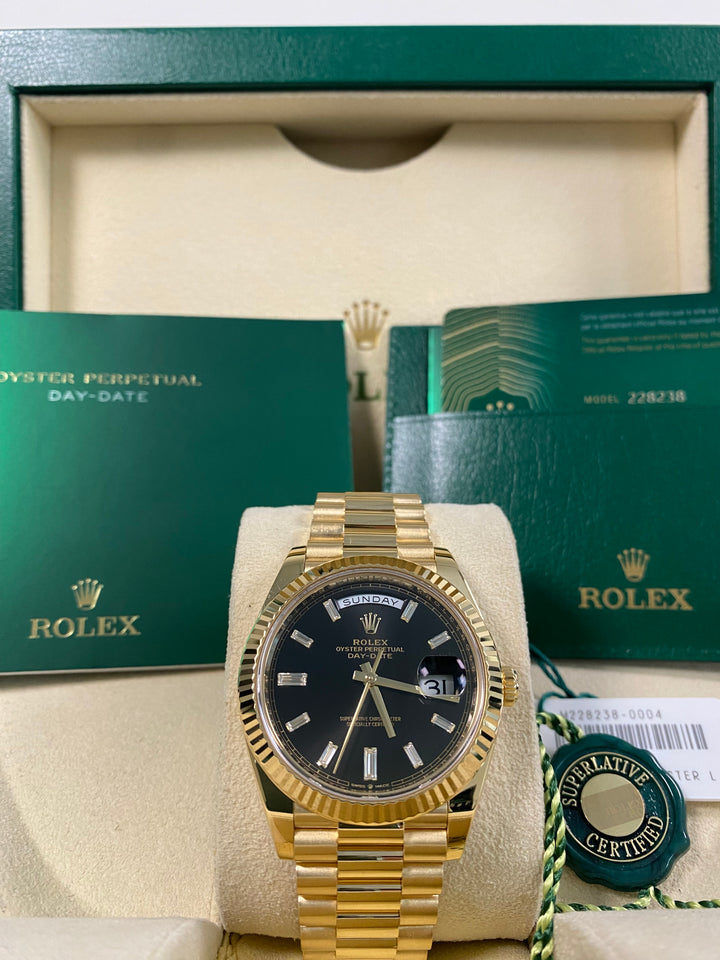 Rolex Day-Date 40 - 2021 - Black Baguette Diamond Dial - 228238 *FULL SET*