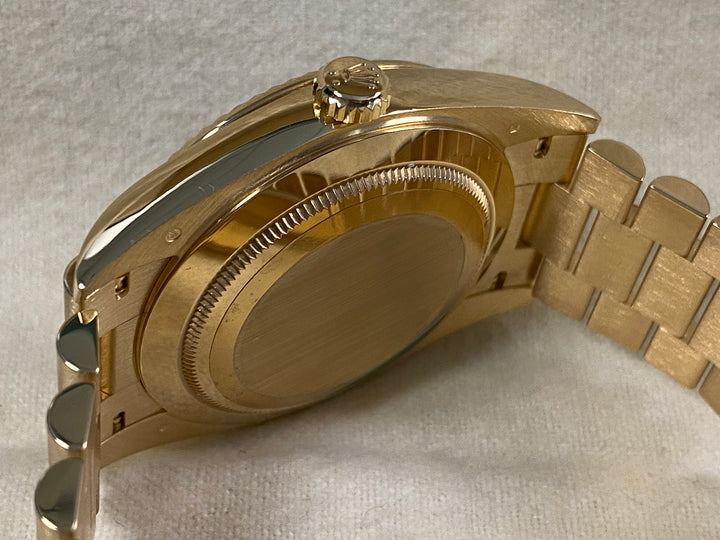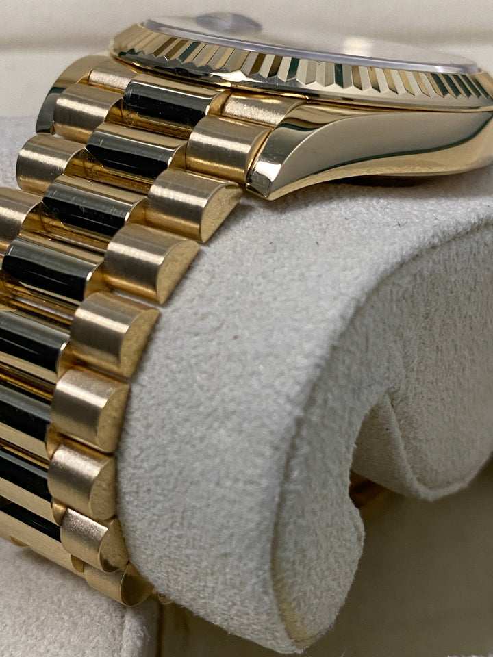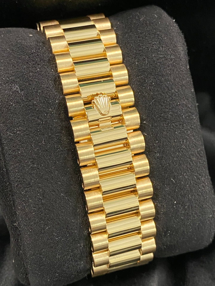 This watch is used but in mint condition and will come as full set with all original Rolex accessories when purchased. The president bracelet is in perfect shape as seen in the photo gallery. This timepiece was originally purchased from AD in March 2021 as indicated on its warranty card. Factory Rolex 5-year Warranty is valid until March 2026. We provide a 1-year Warranty.