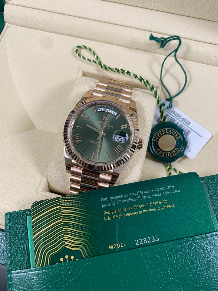 Rolex Day-Date 40 - 2025 - Olive Green Dial - President Bracelet - 228235 *FULL SET*