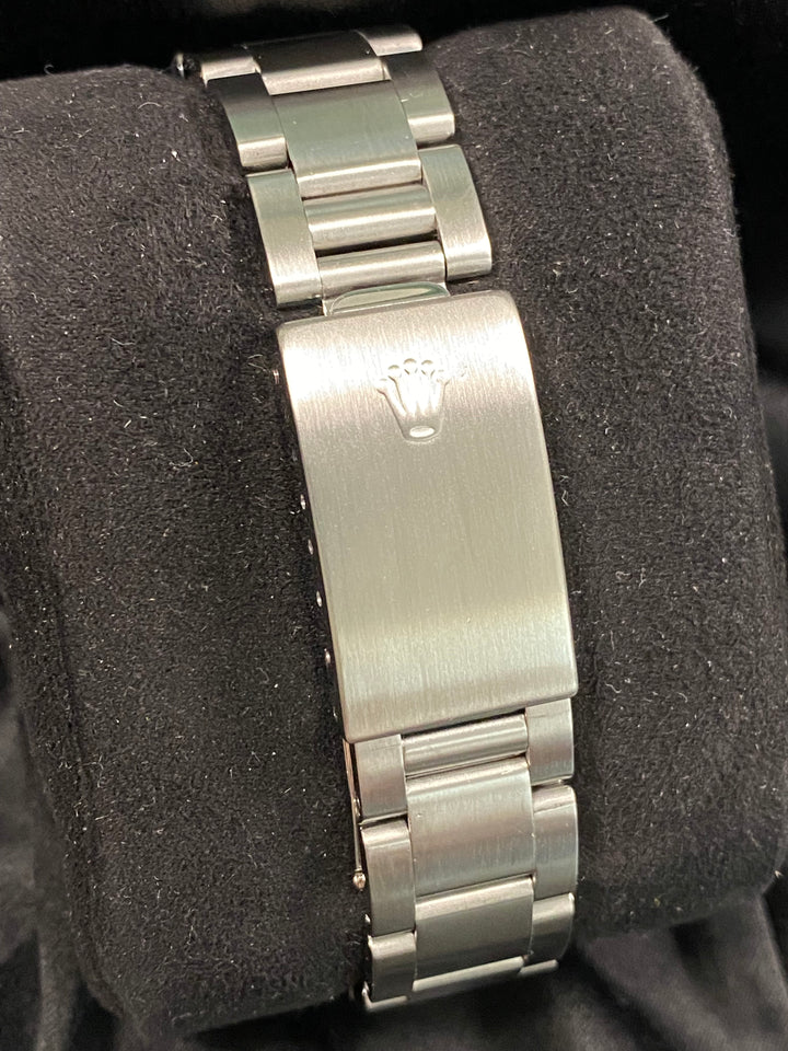 This watch is used but in exceptional condition and will come with an original Rolex box and service guarantee card when purchased. Considering its age, the oyster bracelet is in great shape with minimal signs of stretch as seen in the photo gallery. This timepiece has a X serial. We provide a 1-year Warranty.