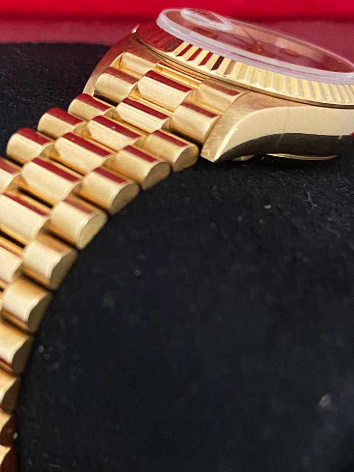 This watch is used but in exceptional condition, ready to ship, and will come with an original Rolex box, paper and RSC card when purchased. Considering its age, the president bracelet is in superb shape with minimal signs of stretch as seen in the photo gallery. This timepiece was originally purchased from AD in 1995 as indicated on its warranty paper. Complete overhaul service was done by RSC in June 2025. RSC 2-year Warranty is valid until June 2027. We provide a 1-year Warranty.