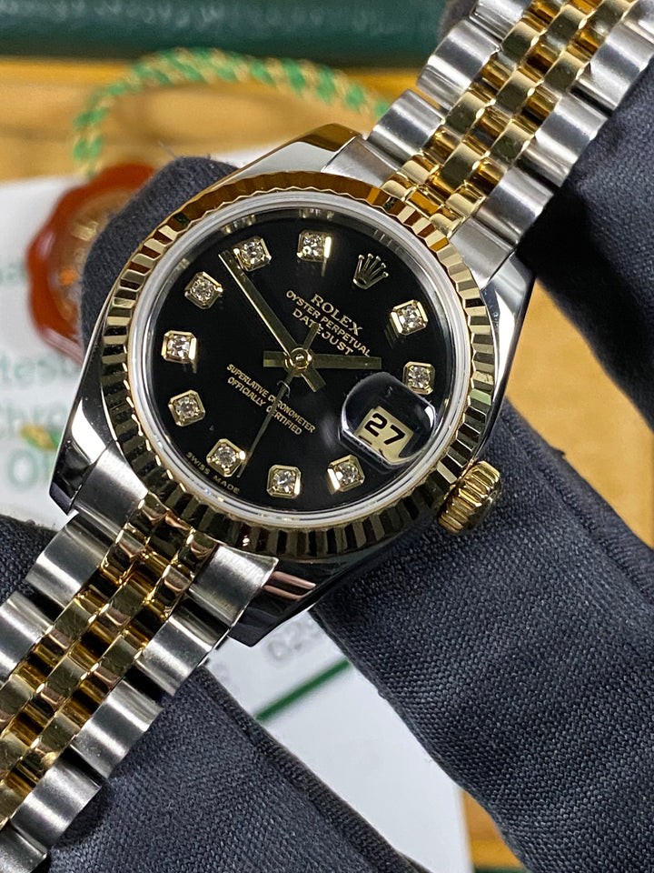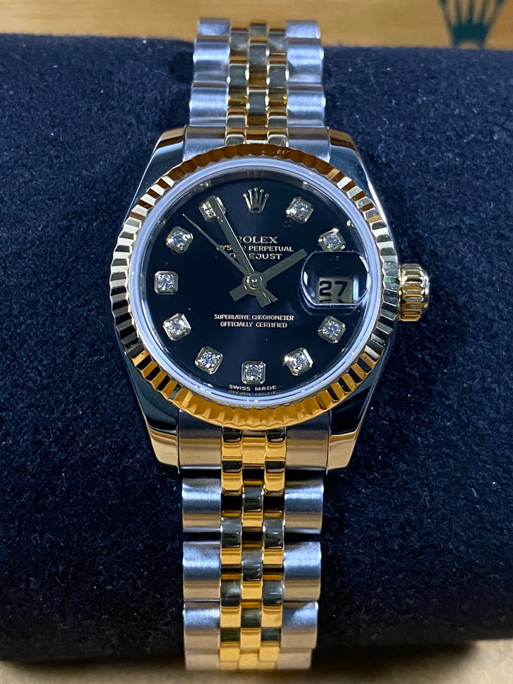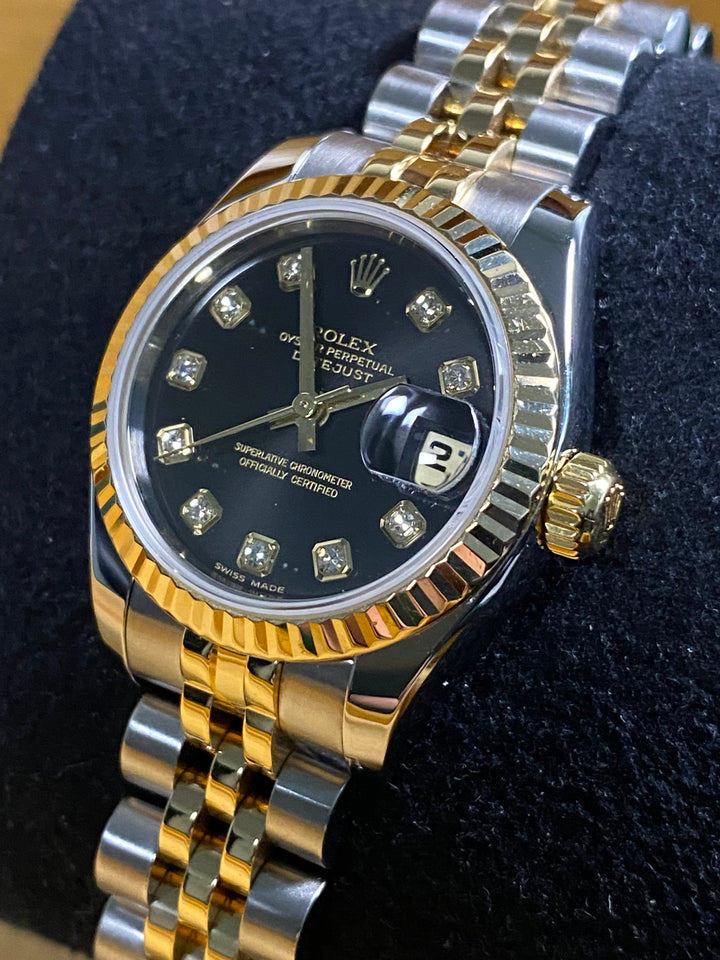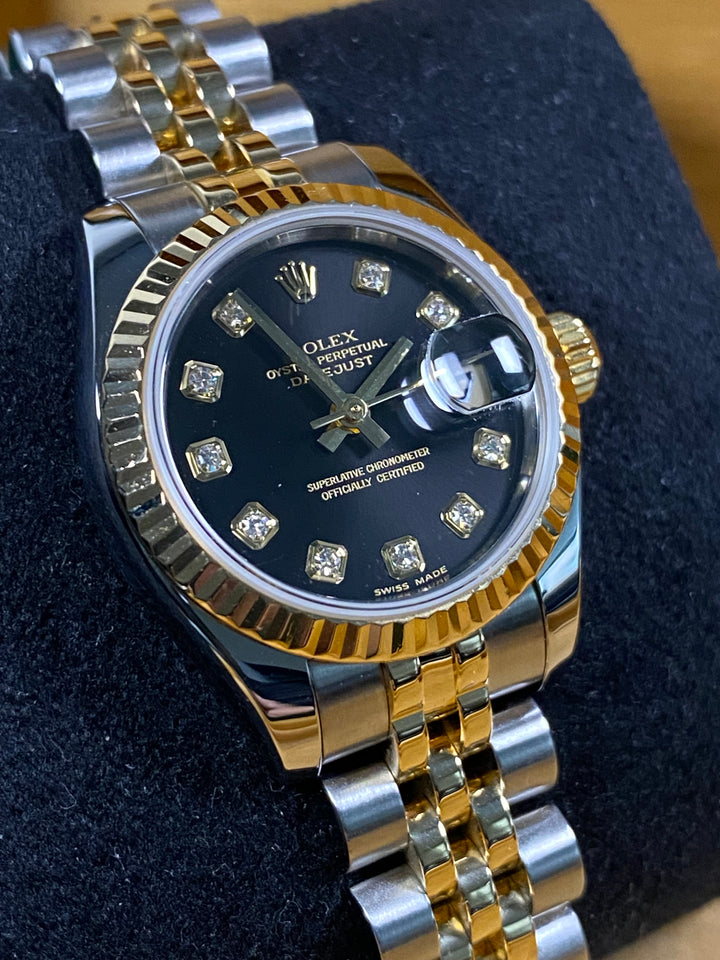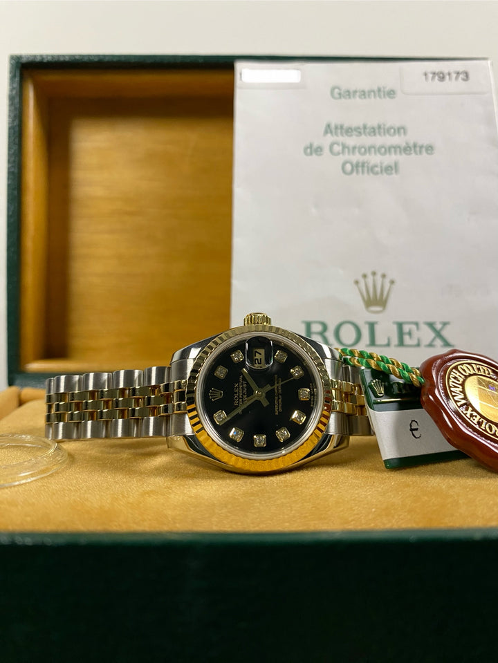 Rolex Lady-Datejust - 2005 - Black Diamond Dial - 179173 *FULL SET*