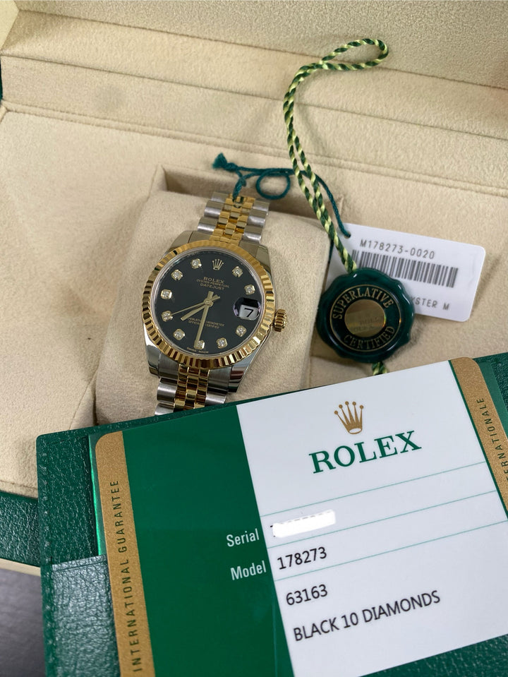 Rolex Lady-Datejust - 2018 - Black Diamond Dial - Jubilee Bracelet - 178273 *FULL SET*