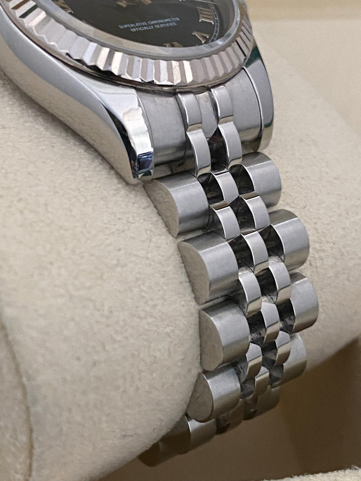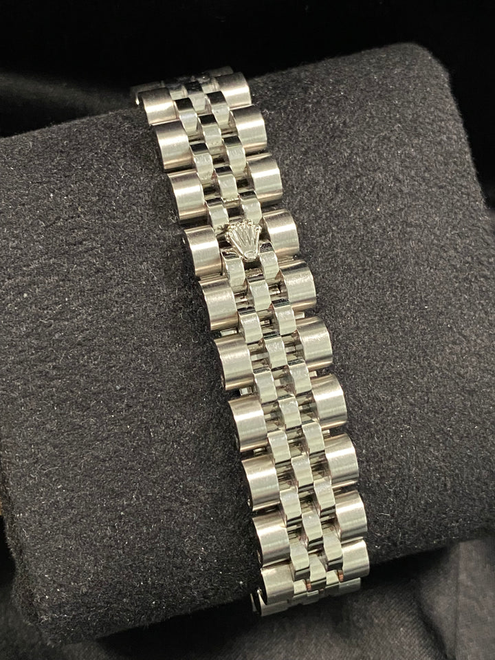 This watch is used but in mint condition and will come with an original Rolex box when purchased. The jubilee band is in near perfect shape with no sign of stretch as seen in the photo gallery. We provide a 1-year Warranty.