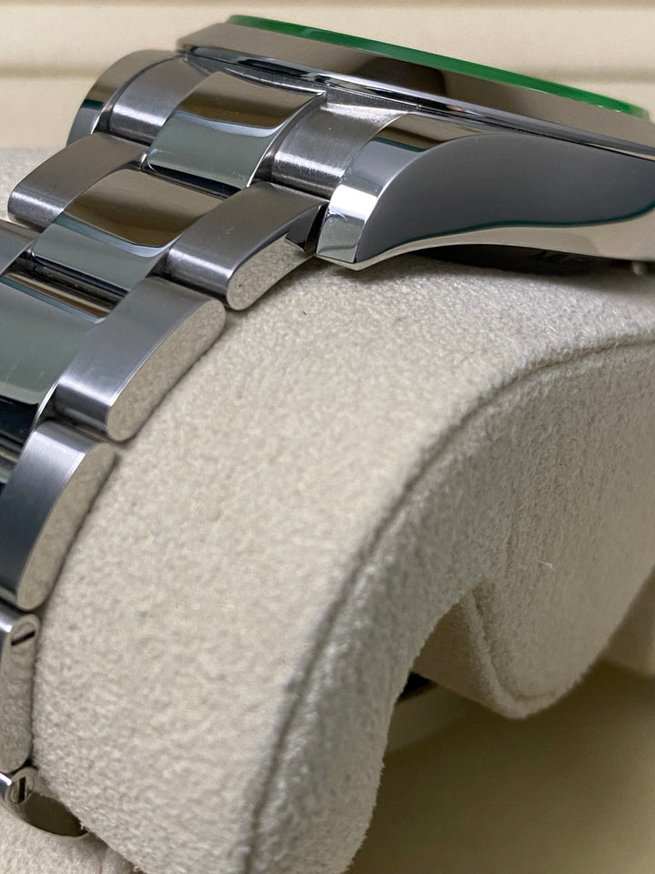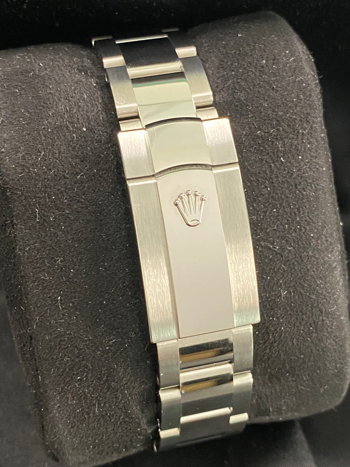 This watch is used but in mint condition, unpolished, and will come complete with all original Rolex accessories when purchased. The oyster bracelet is in great shape as seen in the photo gallery. This timepiece was originally purchased from AD in August 2021 as indicated on its warranty card. Factory Rolex 5-year Warranty is valid until August 2026. We provide a 1-year Warranty.