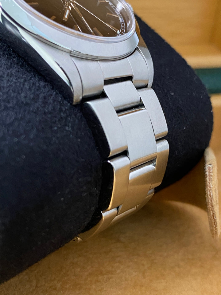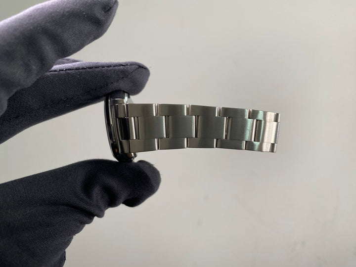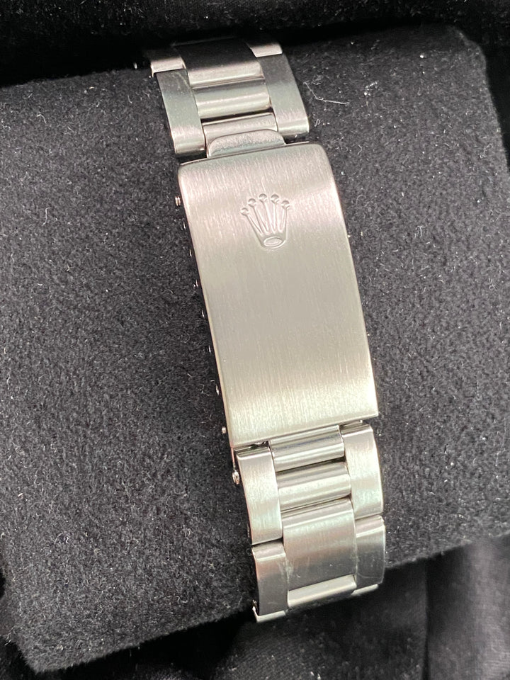 This watch is used but in exceptional condition and will come with an original Rolex box when purchased. The oyster bracelet is in superb shape as seen in the photo gallery. This timepiece has a D serial. We provide a 1-year Warranty.