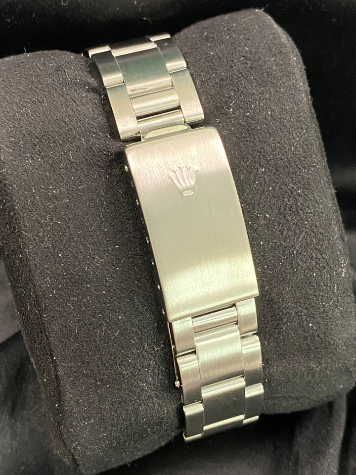 This watch is used but in exceptional condition and will come with an original Rolex box when purchased. The oyster bracelet is in superb shape as seen in the photo gallery. This timepiece has a Y serial. We provide a 1-year Warranty.