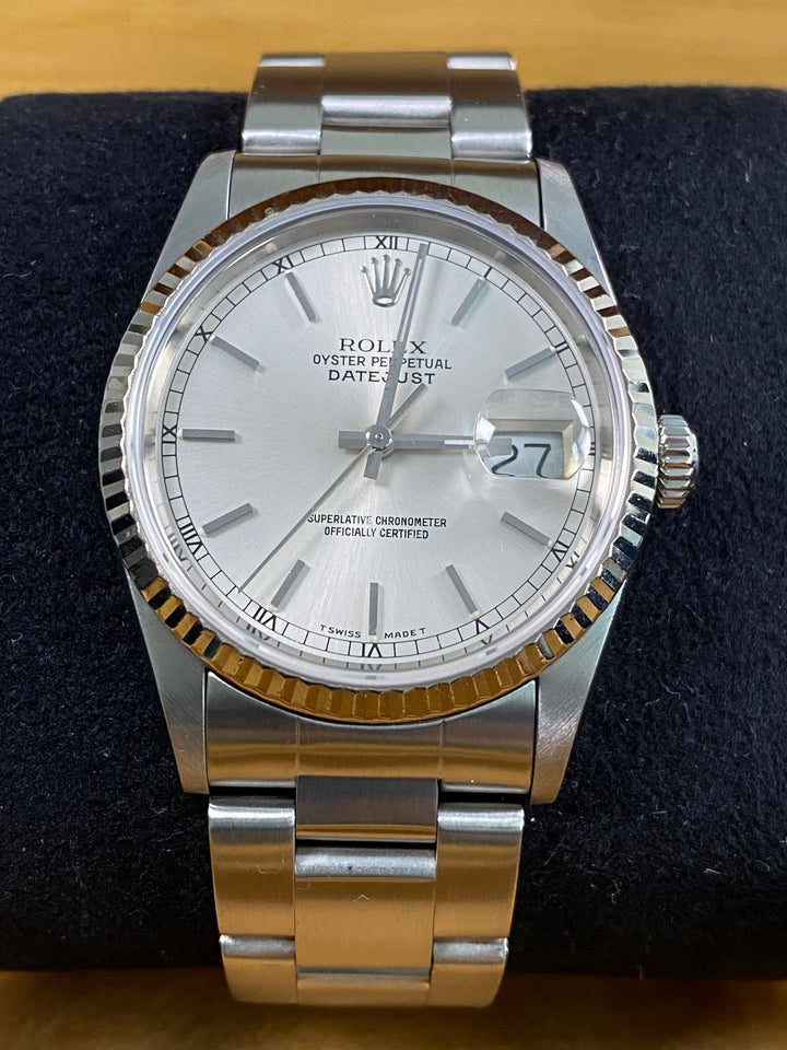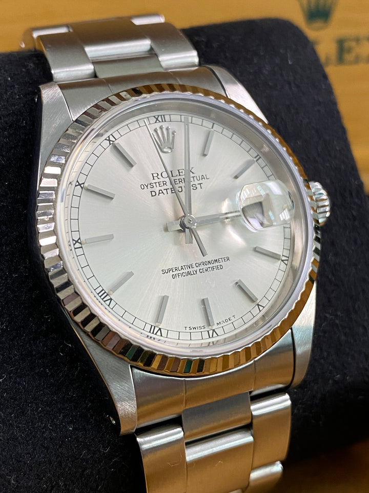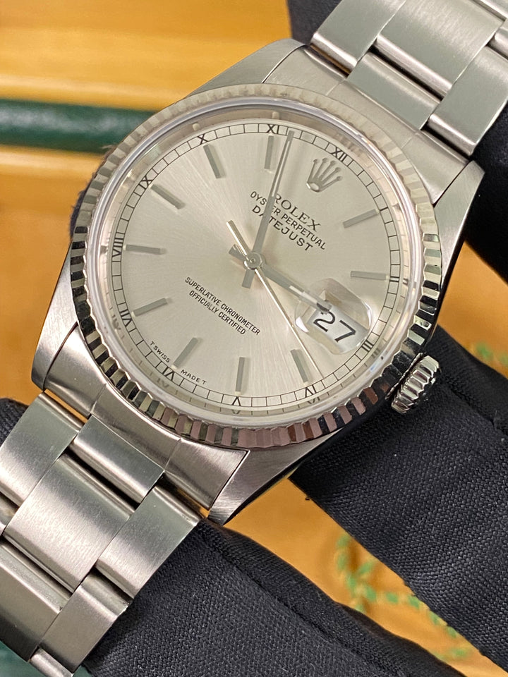 Rolex Steel Datejust 36 - 1993 - Fluted Bezel - Silver Index Dial - Oyster Bracelet - 16234