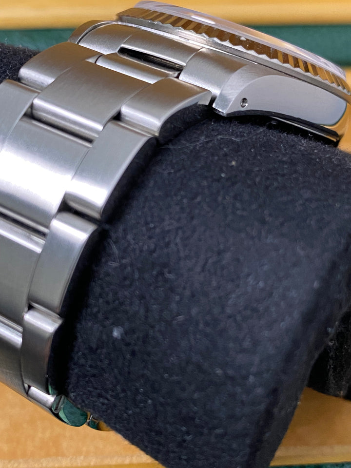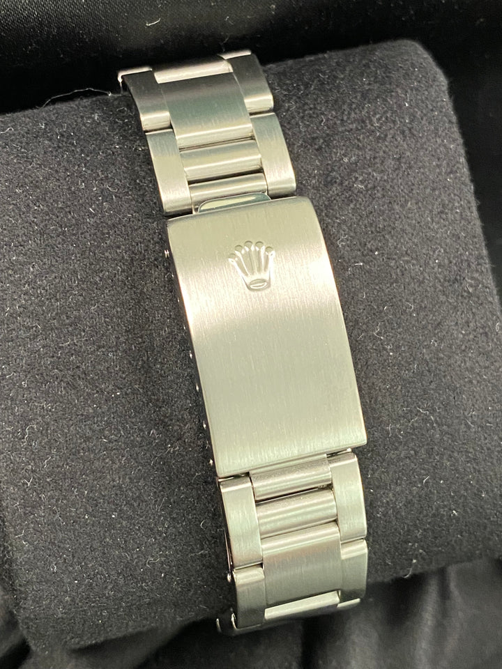 This watch is used but in exceptional condition and will come with an original Rolex box when purchased. The oyster bracelet is in great shape without signs of stretch as seen in the photo gallery. This timepiece has a S serial. We provide a 1-year Warranty.