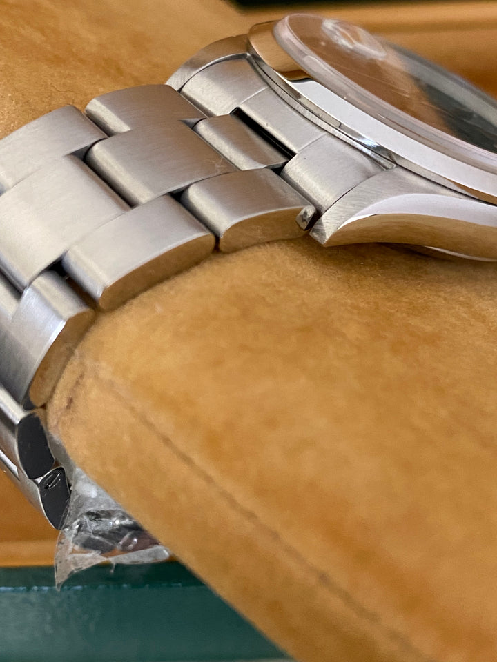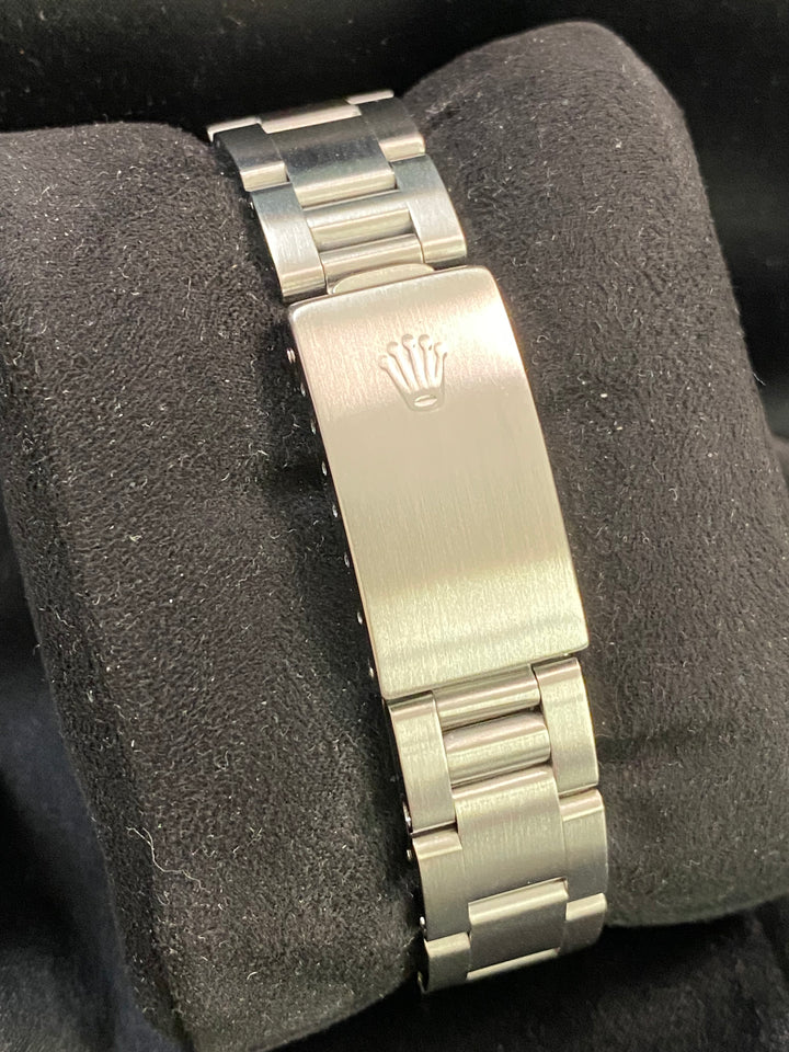 This watch is used but in great condition and will come with an original Rolex box and paper when purchased. The oyster bracelet is in superb shape with minimal signs of stretch as seen in the photo gallery. This timepiece has a K serial. We provide a 1-year Warranty.