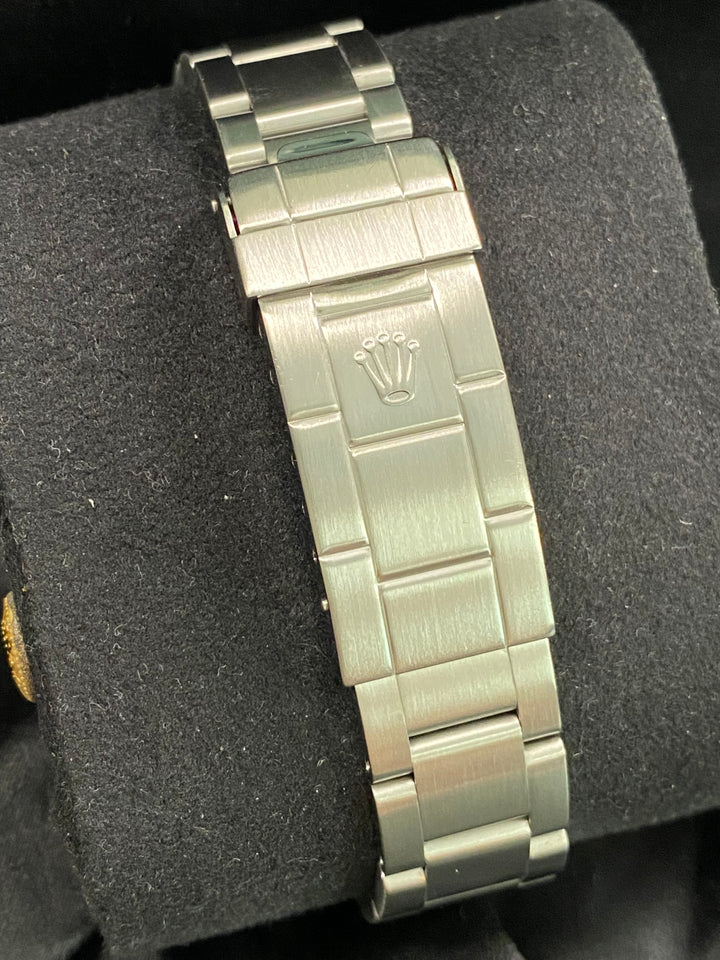 This watch is used but in exceptional condition and will come complete with all original Rolex accessories when purchased. The oyster bracelet is in superb shape with no signs of stretch as seen in the photo gallery. This timepiece has a M serial and was originally purchased from AD in March 2009 as indicated on its warranty card. We provide a 1-year Warranty.