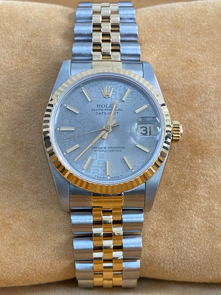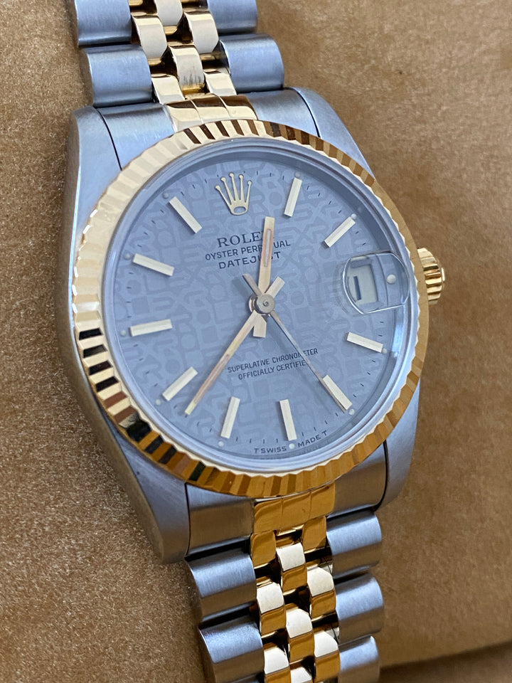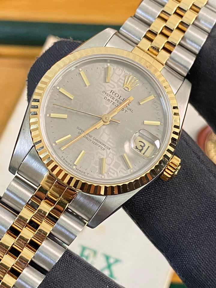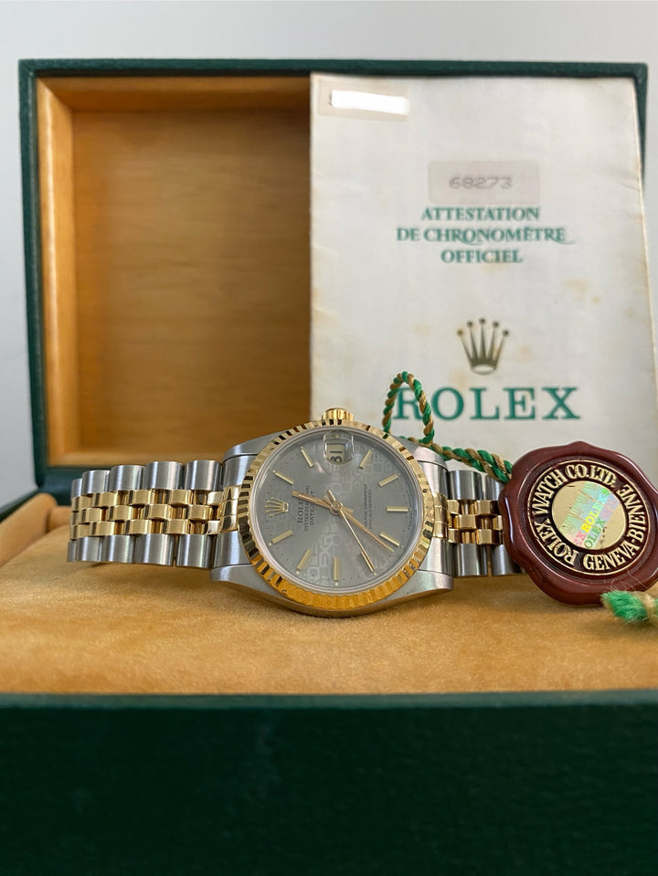Rolex Steel & Yellow Gold Datejust 31 - 1993 - Fluted Bezel - Rhodium Anniversary Dial - Jubilee Bracelet - 68273 *FULL SET*