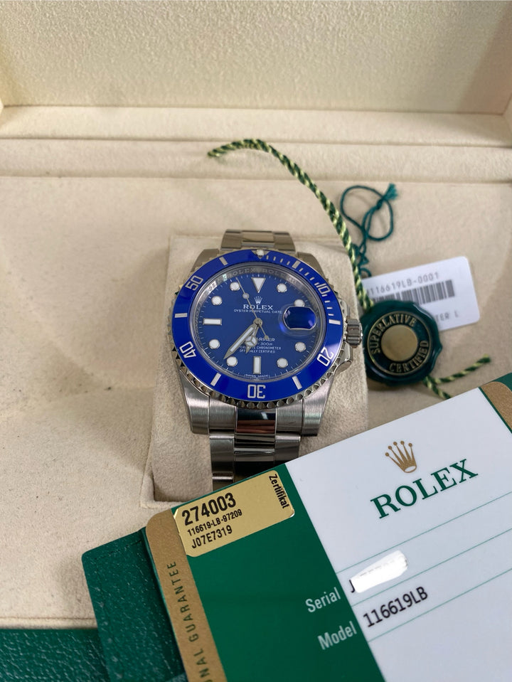 Rolex White Gold Submariner Date - 2016 - "Smurf" - 116619LB *FULL SET*