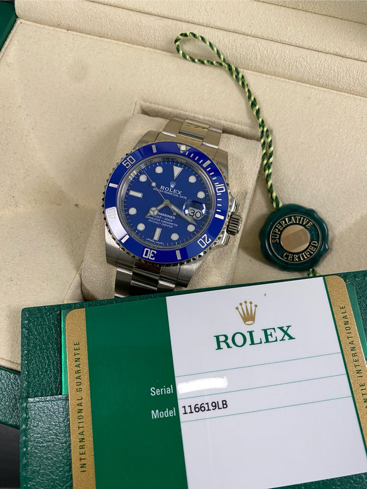 Rolex White Gold Submariner Date - 2019 - "Smurf" - 116619LB *FULL SET*