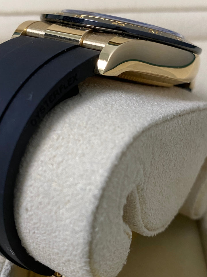 This watch is used but in mint condition and will come complete with all original Rolex accessories when purchased. The oysterflex is in perfect shape as seen in the photo gallery. This timepiece was originally purchased from AD in June 2023 as indicated on its warranty card. Factory Rolex 5-year Warranty is valid until June 2028.