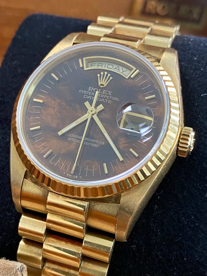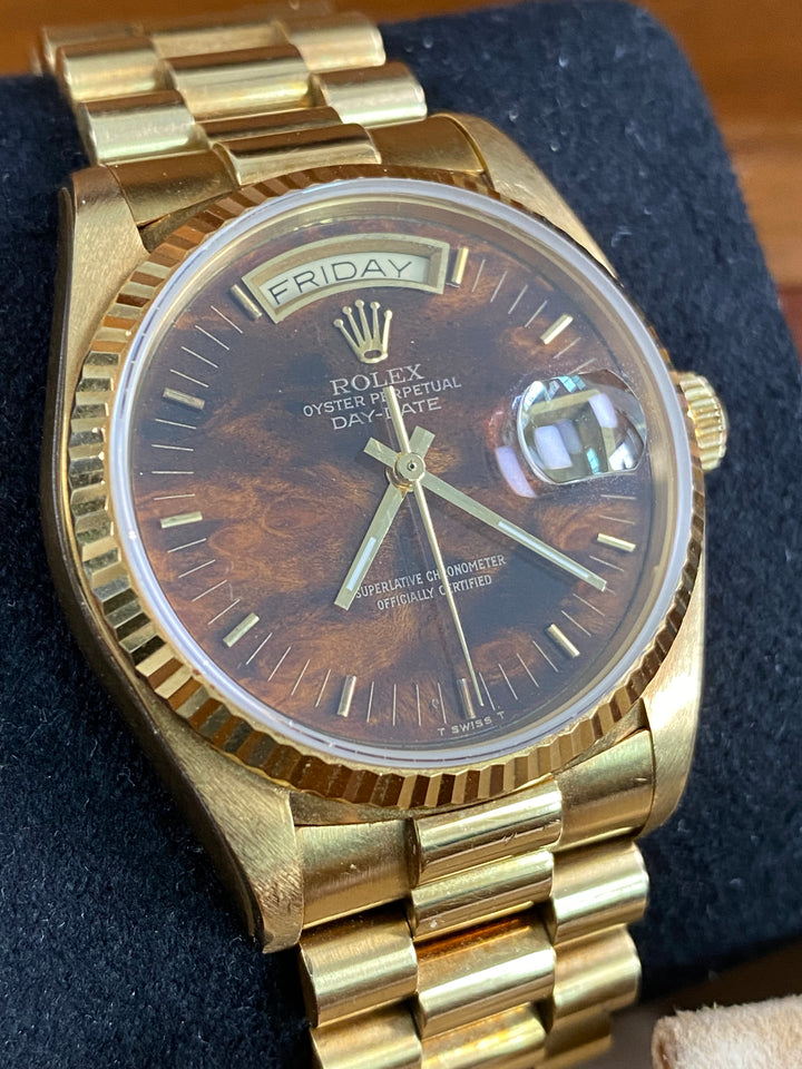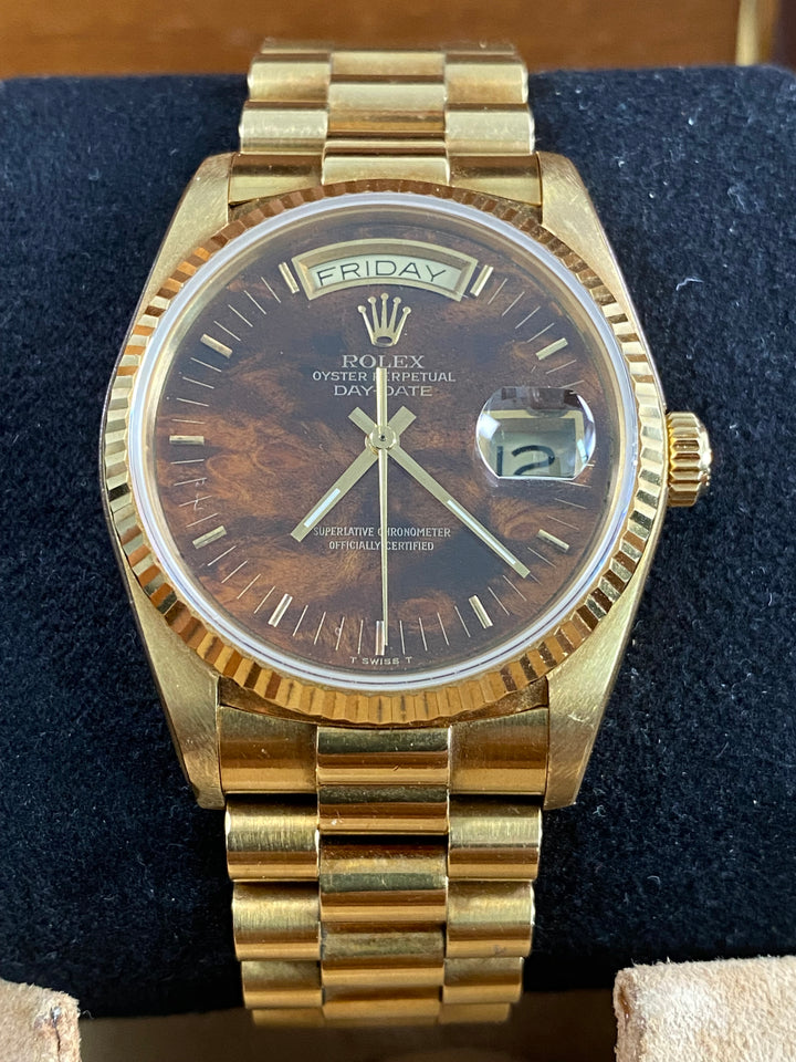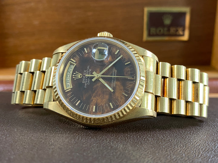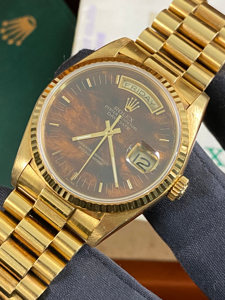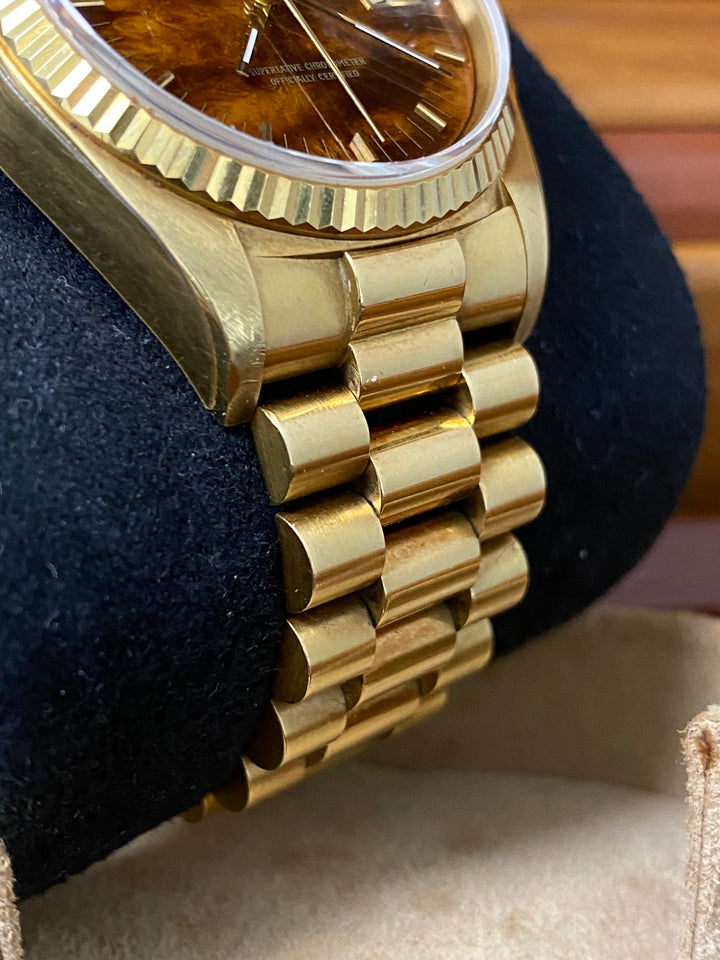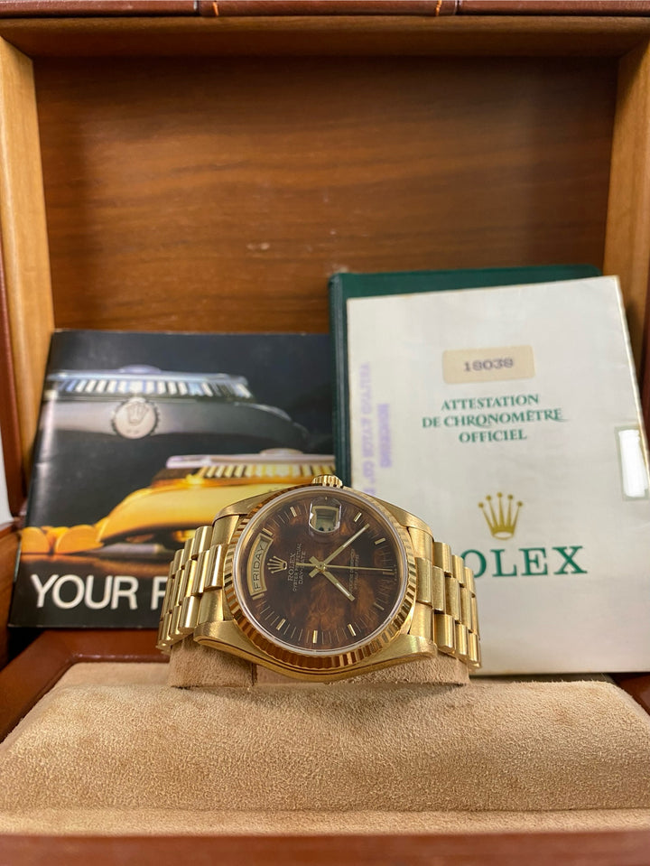 Rolex Yellow Gold Day-Date 36 - 1987 - Wood Dial - President Bracelet - 18038 *FULL SET*